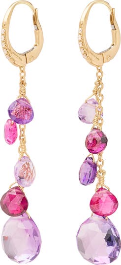 Paradise Pink Tourmaline & Amethyst Drop Earrings