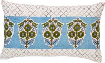 Whimsical Parakeets Block Printed Border in the center of pillow on lattice print background. Reverse side has lattice print only. 20″ x 20″ knife edge decorative pillow cover. Hand screen printed by artisans. 100% Linen Pillow Cover with cotton lining. Hidden zipper enclosure. Insert not included. Handmade in India.