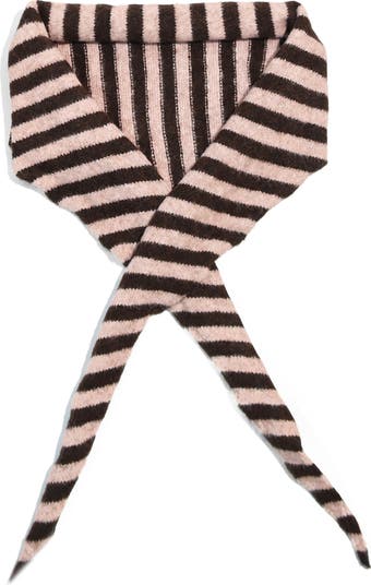 Allover stripes embolden this woolly scarf that wraps in front for optimal ease and warmth.