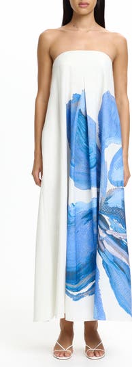 Parisa Placed Floral Strapless Cotton Maxi Dress