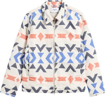 Layer up against the light, between-season chill in this jacket cut from a cotton blend with a vivid pattern that brings cool visual depth and dimension to your look.