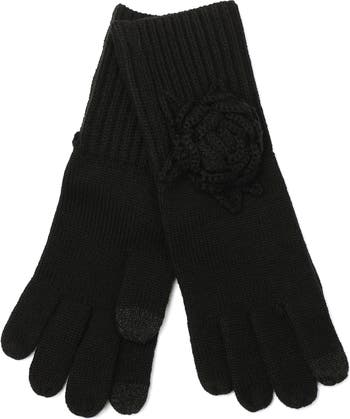 Ribbed gloves bring the warmth to your cold-weather look, while the charming rose appliqués adds on-trend style.