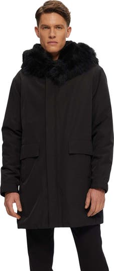 This parka features Genuine Shearling tuxedo detailing and a long hair hood trim, combining rich texture with sophisticated warmth and style.