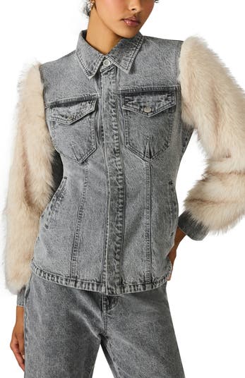 Layer on this standout hybrid jacket that fuses rugged denim with luxuriously soft faux-fur sleeves for a look that's bold, modern and totally street-ready.