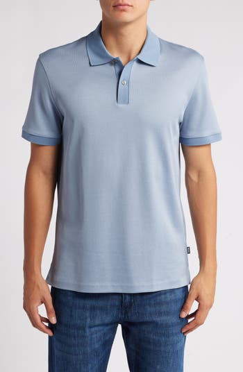Two-tone cotton piqué brings breathability and distinction to a polo framed in solid coloring at the placket, collar and cuffs for a sporty finish.