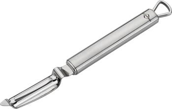The Kuchenprofi Parma Swivel Peeler simplifies the task of peeling fruits and vegetables. At 8.75 inches, it boasts a flexible 18/10 stainless steel blade that contours to your produce, ensuring efficient and effortless peeling.