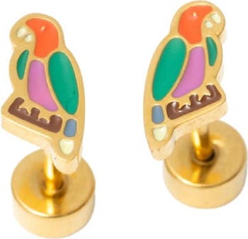 A tiny parrot with a lot of personality. Finished in gold with colorful enamel details for a playful, everyday look.