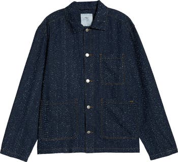 Flecks of texture add casual style points to a dark-rinsed jacket made from sturdy nonstretch denim.