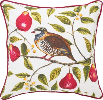 Partridge In A Pear Tree Printed 100% Cotton Christmas Accent Throw Pillow 18" x 18"