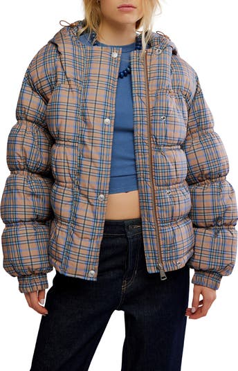 Party of One Plaid Water Resistant Hooded Puffer Jacket
