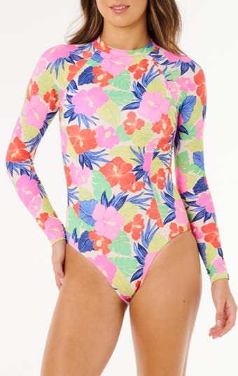 Built-in sun protection and long sleeves ensure you'll be feeling confident as you seek out the waves in this printed one-piece swimsuit.