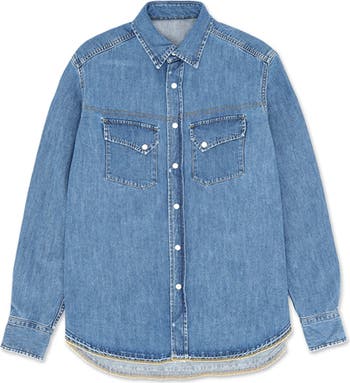 The Pasadena Western Denim Shirt embodies Fortela's artisanal tradition. This texan-style shirt features a regular fit, front and back yokes, and two flap pockets. Mother-of-pearl snap buttons add a refined touch. Crafted in Italy from 100% denim, it reflects Fortela's commitment to quality and timeless elegance.