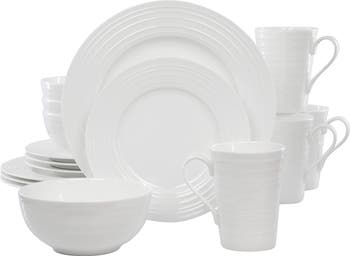 Bring timeless elegance to your table with the Gibson Elite Pascale 16 Piece Embossed Bone China Dinnerware Set in White. Crafted from high-quality bone china, each round piece features a glossy finish and a delicate embossed design that adds a touch of sophistication to any meal. The pure white color and classic shape make this set versatile for both everyday dining and special occasions.This set includes four dinner plates, four salad plates, four bowls, and four cups-providing complete service for four. Designed for modern convenience, every piece is both dishwasher and microwave safe, making cleanup and reheating simple and efficient. The Gibson Elite Pascale set beautifully combines style, durability, and practicality for your home.