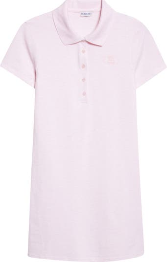 This soft A-line knit polo dress features knight logo embroidery at the chest and polished mother-of-pearl buttons, while the interior placket is trimmed with the Burberry classic beige check for signature style.