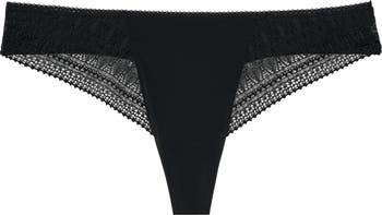 Stretchy lace and soft, opaque microfiber combine to give this thong a sensual look.