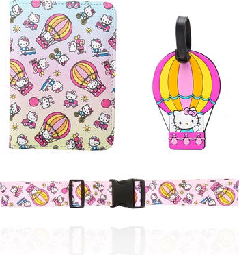 Travel in style with the Sanrio Hello Kitty Passport Holder, Luggage Tag, and Luggage Strap Gift Set. This adorable set features iconic Hello Kitty motifs on each accessory, adding charm and personality to your travel essentials.