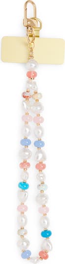 Transform your phone into a fun accessory with this wrist strap made of pastel beads and lustrous faux pearls. Bonus: it doubles as a charm for your favorite handbag.