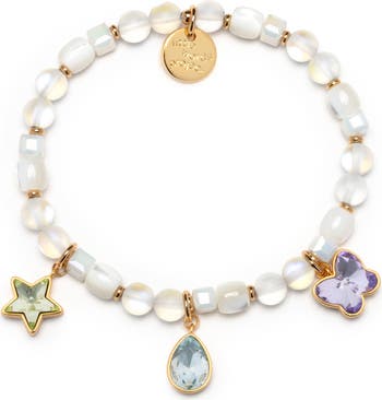 Glossy pastel beads and shimmering crystal charms make this stretch bracelet easy to stack with your everyday favorites.