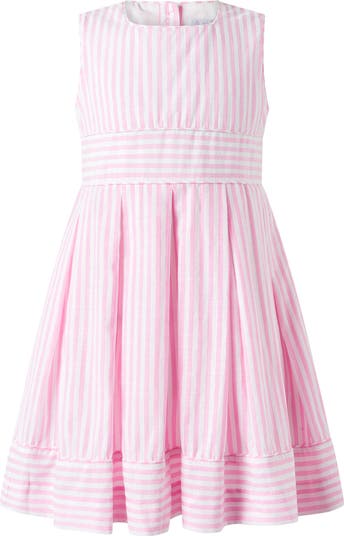 Fresh, timeless, and effortlessly refined, our Pastel Oxford Pleated Stripe Dress is a modern interpretation of traditional English childrenswear. Crafted from premium oxford cotton in soft pink and white vertical stripes, this elegant girls’ dress balances playful charm with heritage tailoring.
