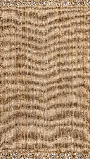Natural jute fiber and a chunky texture make this handwoven rug a great addition to your home. The solid natural jute color works almost anywhere, in both modern or traditional rooms. Fringed ends add even more texture. This rug is reversible for longer wear.