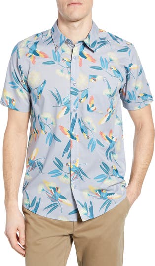 A dark agave print patterns a comfortable organic cotton-blend sport shirt designed to resist wrinkles and provide a clean, slim fit. The plain woven construction is lightweight and breathable so you feel as good as you look.