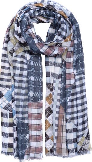 Patch Plaid Wrap is crafted from 100% recycled polyester, woven into a generous 38" x 72" wrap. Finished with a subtle ½" self-fringe at the bottom ends, it combines contemporary sustainability with classic plaid warmth and understated style.