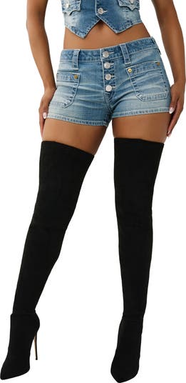 Front patch pocket add retro flair to these these denim shorts made with a kiss of stretch for a shapely fit and embellished with horseshoe embroidery on the back pockets for a signature finish.