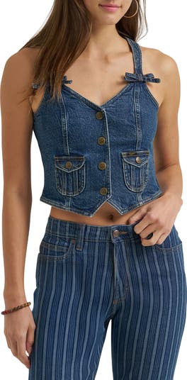 Rugged denim gets a sweet little twist in this bow‑bedecked vest complete with Lee’s signature spade pockets and a martingale belt that cinches to the perfect fit.