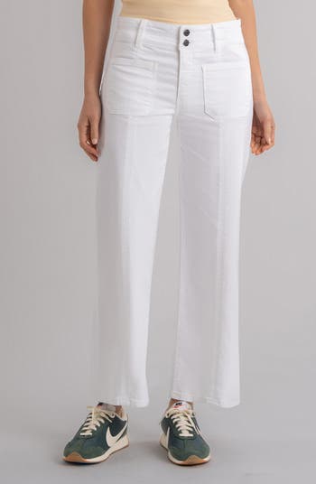Patch Pocket High Waist Ankle Wide Leg Jeans