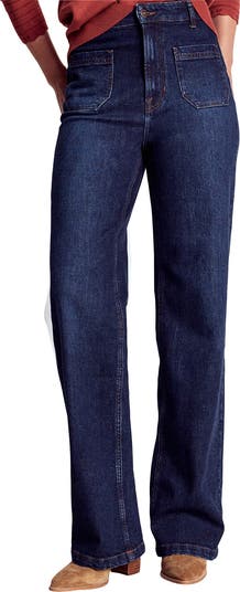 Right in between straight-leg and wide-leg, these full-length jeans feature elevated details like a high waist, patch pockets and a dark-indigo wash.