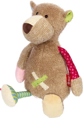 This designer teddy defies the notion of “simple bare necessities”. Rather, he lives by the principle that more is more, donning an eclectic feel-good mix of fabrics and pattern, from shaggy plush to corduroy, from dots to stripes. He applies the same principles to cuddles and hugs, which he gives away aplenty with that laid-back smile telling you that ya can’t be runnin’ outta love.
