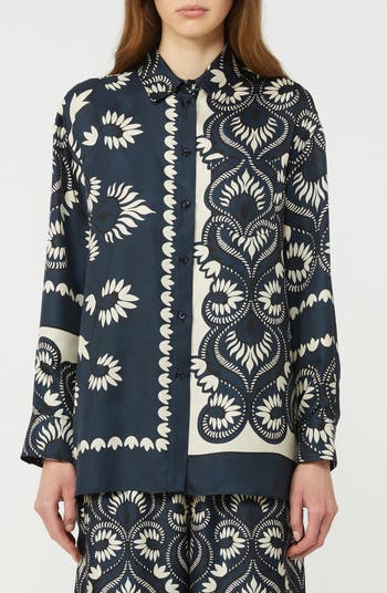 A patchwork of stylized botanical motifs covers this relaxed-fit button-up shirt cut from fluid jersey for effortless movement and comfort.