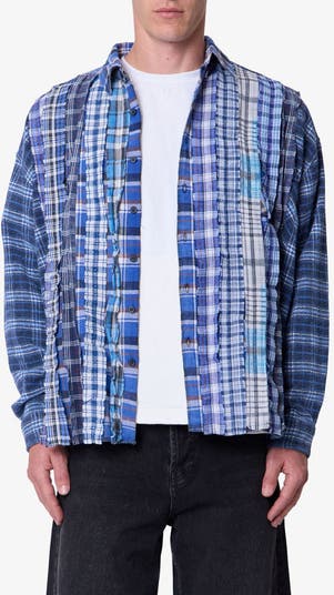 Colorful plaid and patchwork composition make this woven cotton shirt a standout option for everyday wear.