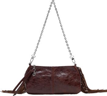 The signature Miss M bag comes in a clutch version that's both chic and practical. Made from leather, it has a detachable chain handle for carrying over the shoulder or in the hand, and is embellished with Maje's signature fringes on the sides. A leather pull tab accentuated with a clover tassel opens the zipped fastening, so you can slip in all your essentials.