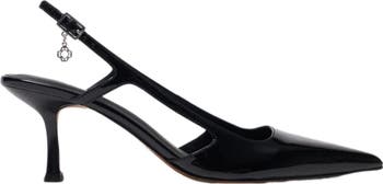 - Patent leather slingback pumps
