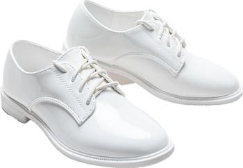 The Patent Oxford Laced Dress Shoes are made from sleek patent leather. These shoes showcase a polished finish that’s ideal for formal occasions and distinguished looks. The traditional laced design adds a touch of sophistication while ensuring a snug and comfortable fit. The glossy exterior enhances their classic appeal, making them a standout addition to any young gentleman’s wardrobe.