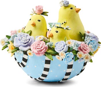 A trio of baby chicks hatching from one flower-tossed egg triples your seasonal delight wherever you display this sweet figurine.