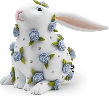A coat of dimensional peonies decorates this sweet bunny sculpture that's as ready as you are to welcome the season.