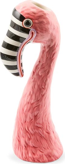 Display your favorite florals in playful style with this hand-painted flamingo vase.