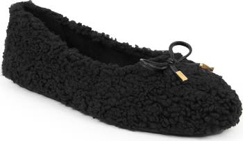 Plush faux shearling and a dainty bow add plenty of personality to this classic ballet flat complete with a comfort-cushioned footbed.