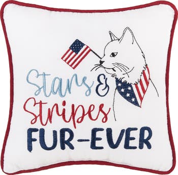 - Featuring an adorable embroidered cat wrapped in the stars and stripes, this petite accent pillow showcases a lively Americana spirit, making it a delightful decorative piece for Independence Day, Memorial Day, and Labor Day celebrations.