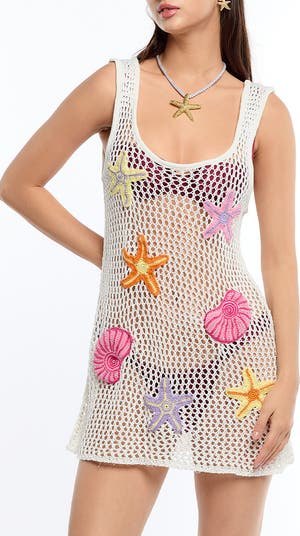Handcrafted by Peruvian artisans, this flower-powered cover-up is offered in an airy open stitch.