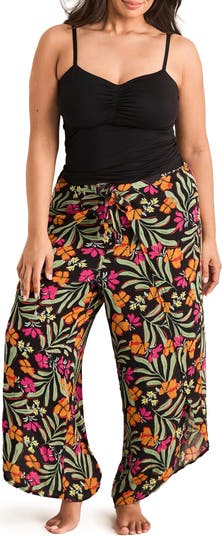 This beachy lounge set features double-lined cups, an elastic underbust band, and fully adjustable straps. The woven pants have a faux wrap that you can tie and untie.