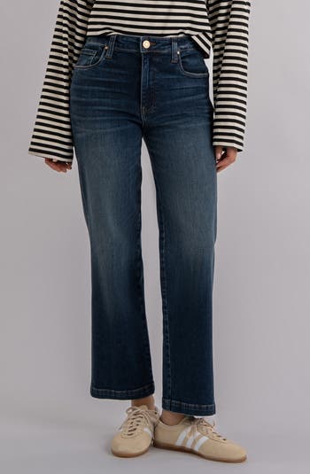 Casual-chic for everyday outfits, these stretchy jeans feature a not-too-high high waist, shapely back seams and relaxed straight legs.