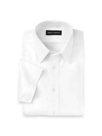 Non-iron Cotton Pinpoint Solid Point Collar Short Sleeve Dress Shirt