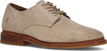 Clean lines and minimal detailing bring go-to versatility to a derby made of brushed suede with plain-toe construction keeping the finish smart and simple. Pair it with soft fabrics to kick up an everyday look or add an old-school foundation to a semiformal outfit.