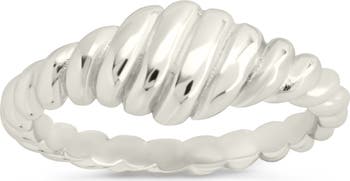 Pillowy ridges catch the light on this baguette-shaped ring crafted from polished sterling silver or warm 14-karat gold plate.
