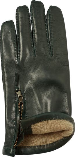 Cashmere lining lends another layer of luxury to these supple sheepskin-leather gloves handmade with zip details for easy on and off.