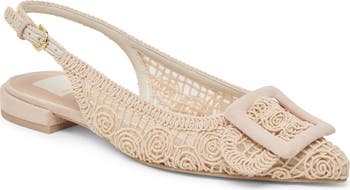 A tonal buckle detail counterbalances the earthy vibes of a slingback flat complete with a classic pointy toe.