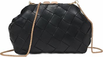 - Exterior Details: Woven Design, Metal Kiss Lock, Detachable Chain Strap